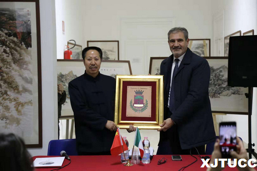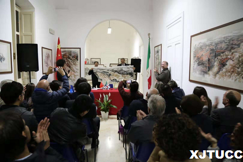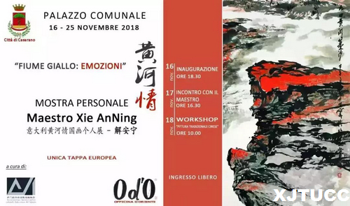 意大利当地时间11月16日,西安交通大学城市学院艺术系主任解安宁教授山水画系列作品在卡萨拉诺市政厅开幕。当天出席开幕式的嘉宾有意大利卡萨拉诺市长 Gianni Stefano、意大利卡萨拉诺市政府外事办公室主任Alessandro Astore、萨兰托中意文化交流协会会长史洪波等。