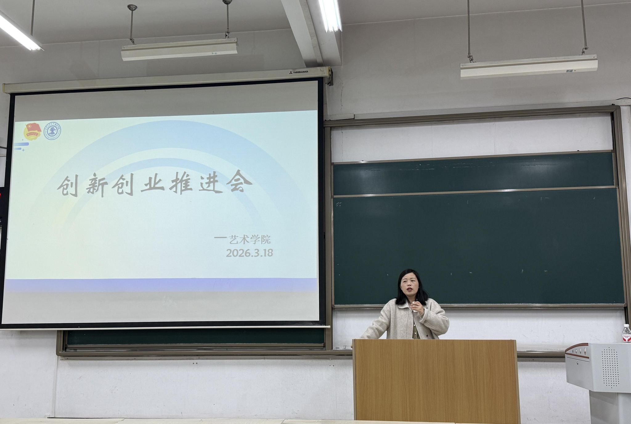 为进一步激发我院学生的创新创业热情,提升大学生在创新、创意、创造、创业等方面的综合素质,增强同学们对创新创业的认知与实践能力,展示艺术学科创新创业成果,艺术学院于3月18日晚19:00在E400教室举办了“创新创业”大赛推进会。艺术学院创新创业负责人张小欢老师、学院创新创业团队成员及大一学生共同参加了本次会议。