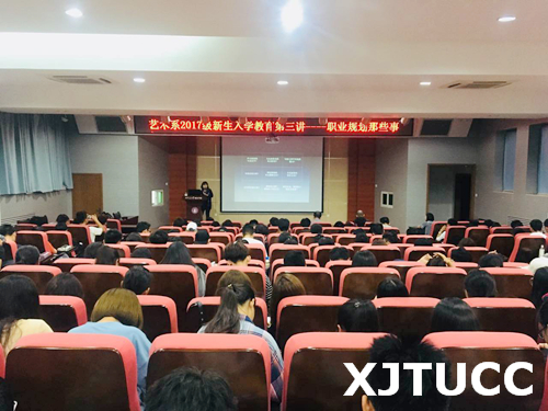 为了使大一新生了解职业发展方向,明确专业学习目标,更科学地规划大学四年生活和了解礼仪细节,明确使用礼仪的场合与规范,艺术系分别于9月18日与9月20日在F100报告厅开展2017级新生入学教育第三讲职业能力规划与第四讲公关社交礼仪。此次讲座专门请到了学生服务中心就业创业主管马瑞老师和经济系副主任张武康老师担任主讲,艺术系2017级各班主任、学工办老师及2017级新生参会,辅导员王茜老师主持。
