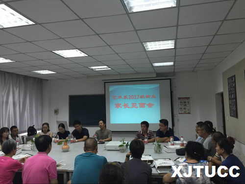 8月20日上午,西安交大城市学院艺术系2017级新生家长见面会在综合楼208教室召开。艺术系系主任解安宁教授,主任助理张春新、韩仲远,办公室主任程颖,各专业教研室负责人,学工主管李成及2017级新生辅导员王茜等老师出席了本次见面会。会议由张春新老师主持。