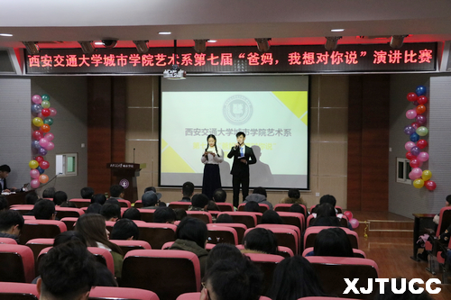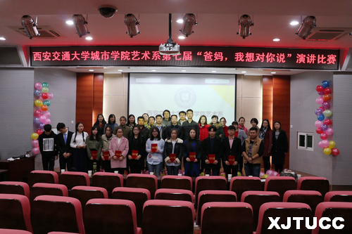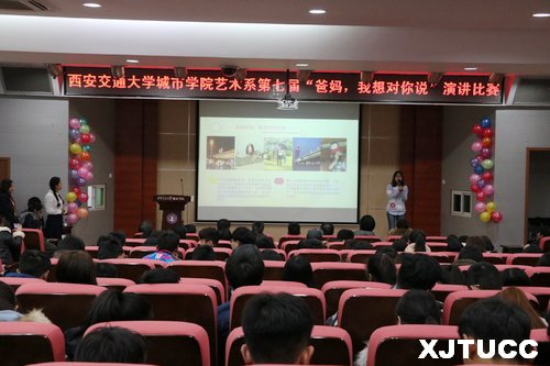 12月1日晚,西安交通大学城市学院艺术系团工委学生会在F100报告厅举办第七届“爸妈,我想对你说”主题演讲比赛。此次演讲比赛邀请到艺术系主任解安宁、院团委书记吴昊翔、计算机系学生工作主管刘敏涛、中兴学院团学负责人樊超、艺术系主任助理张春新和韩仲远、艺术系办公室主任程颖、艺术系系学生工作主管李成担任本次比赛的评委,艺术系全体教职工莅临比赛现场。