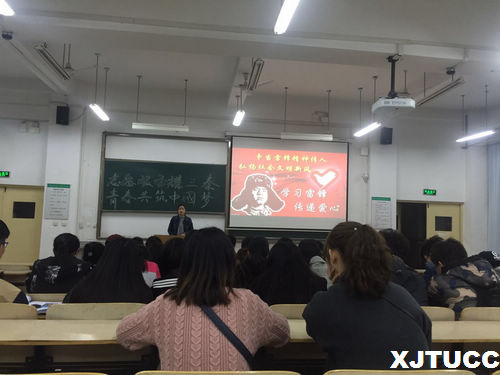 大会伊始,马岚老师对学生组织的雷锋月志愿活动给予了肯定,并请参与志愿服务活动的队员逐一分享了他们的志愿服务心得。结合同学们的感想,马老师就当下“感恩”、“传承发扬志愿服务精神”与“如何践行学习雷锋精神”的热点话题进行讲述,使同学们更深刻理解雷锋精神的时代意义。