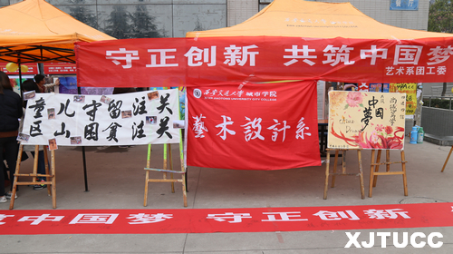 为引导团员青年践行社会主义核心价值观,激励团员青年践行“尚德笃学,守正创新”校训,激励团员青年能够积极投身于“共筑美好中国梦”系列活动中去,11月16日中午,西安交通大学城市学院艺术系团工委,学生会在中快餐厅楼下举行了“尚德笃学,共筑美好中国梦”主题团日外展活动。